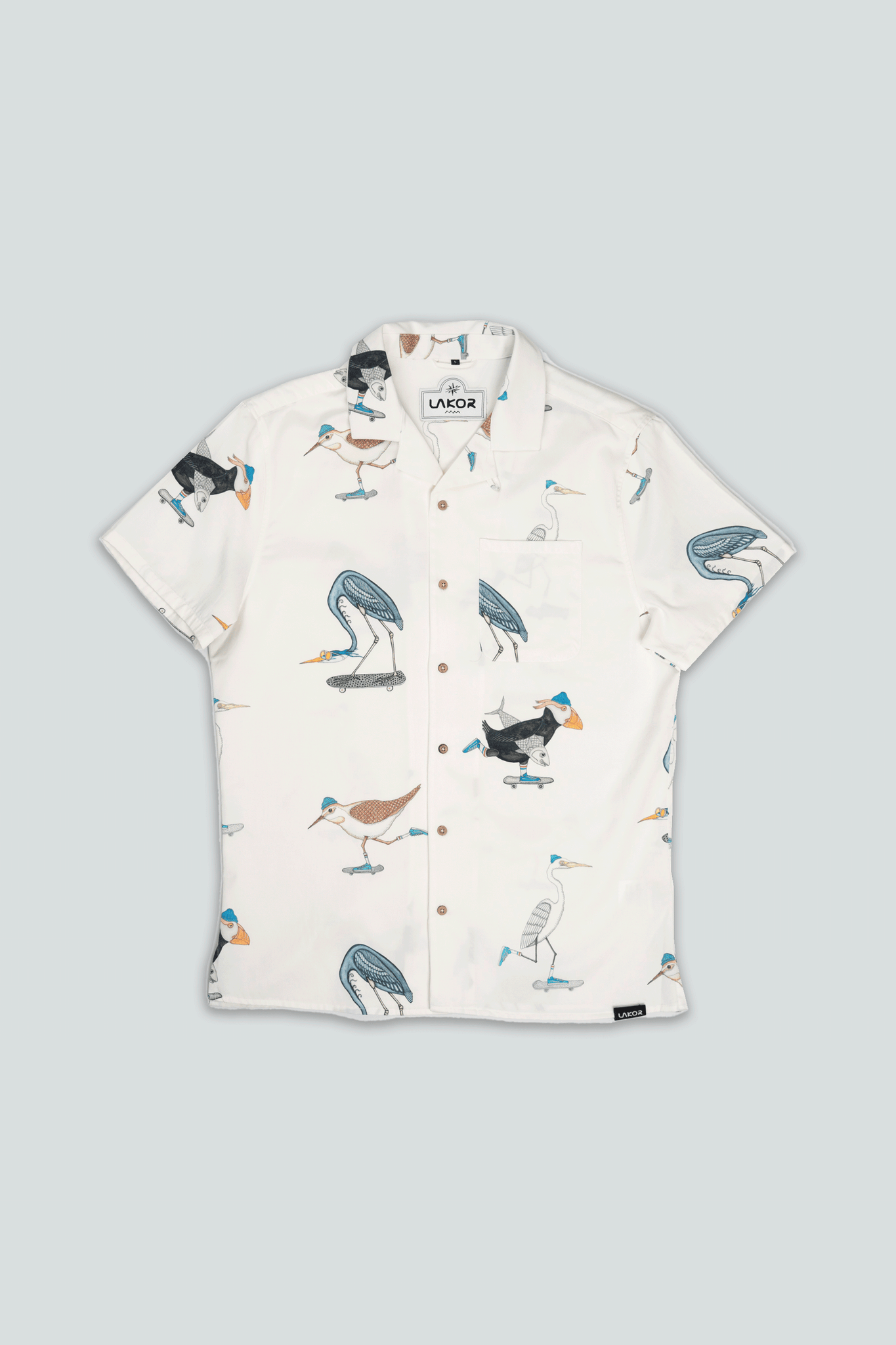 Skating Birds Short Sleeve Shirt (Star White)
